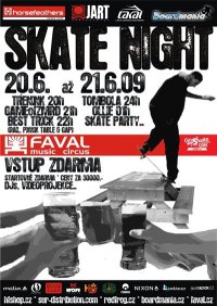21. červen je mezinárodním dnem skateboardingu, tzv. "Go skateboarding day!" a jelikož v Brně skate scéna ještě neumřela, rádi bychom Vás pozvali na akci v Brně nevídanou a to "SKATE NIGHT", která se uskuteční v legendárním klubu Favál. Jelikož 21.6. vychází na neděli, bylo rozhodnuto akci uskutečnit tzv. v Silvestrovském stylu, tedy přes půlnoc a tak oslava dne skateboardingu v Brně bude probíhat od soboty 20.6. od 21:00 do neděle 21.6. do rána!! No a na co že se můžete těšit?